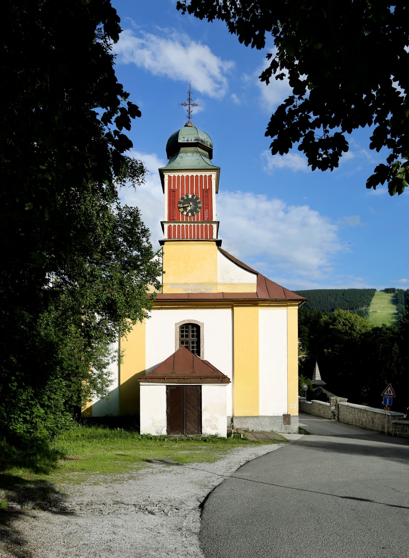 Stało się tak z powodu błędu urzędniczego. Miejscowi górale pragnęli własnego kościoła i parafii, ponieważ w miejscowej kaplicy nabożeństwa odbywały się tylko trzy razy w roku, a do kościoła w Vrchlabí trudno było dojechać z powodu braku drogi.